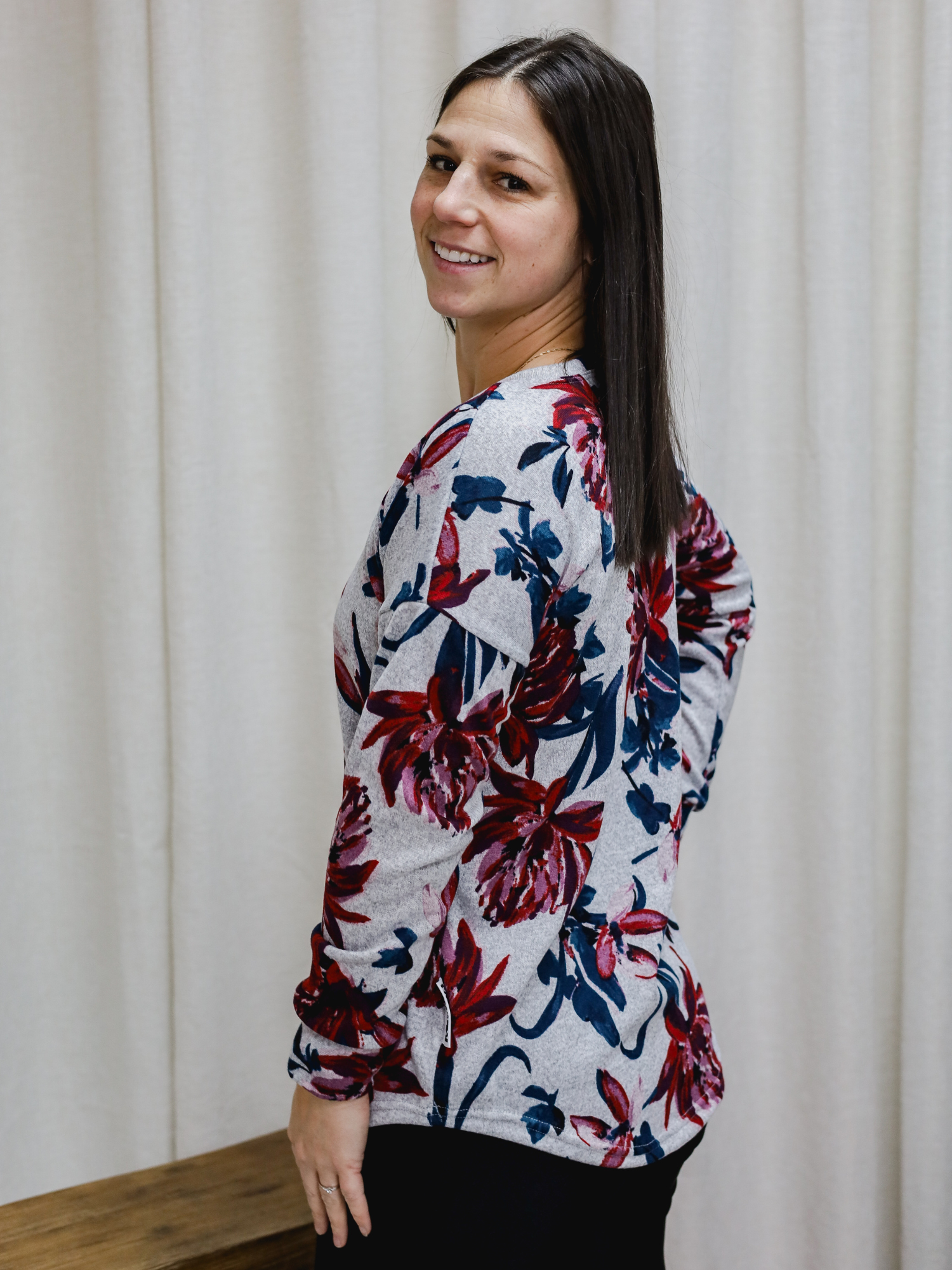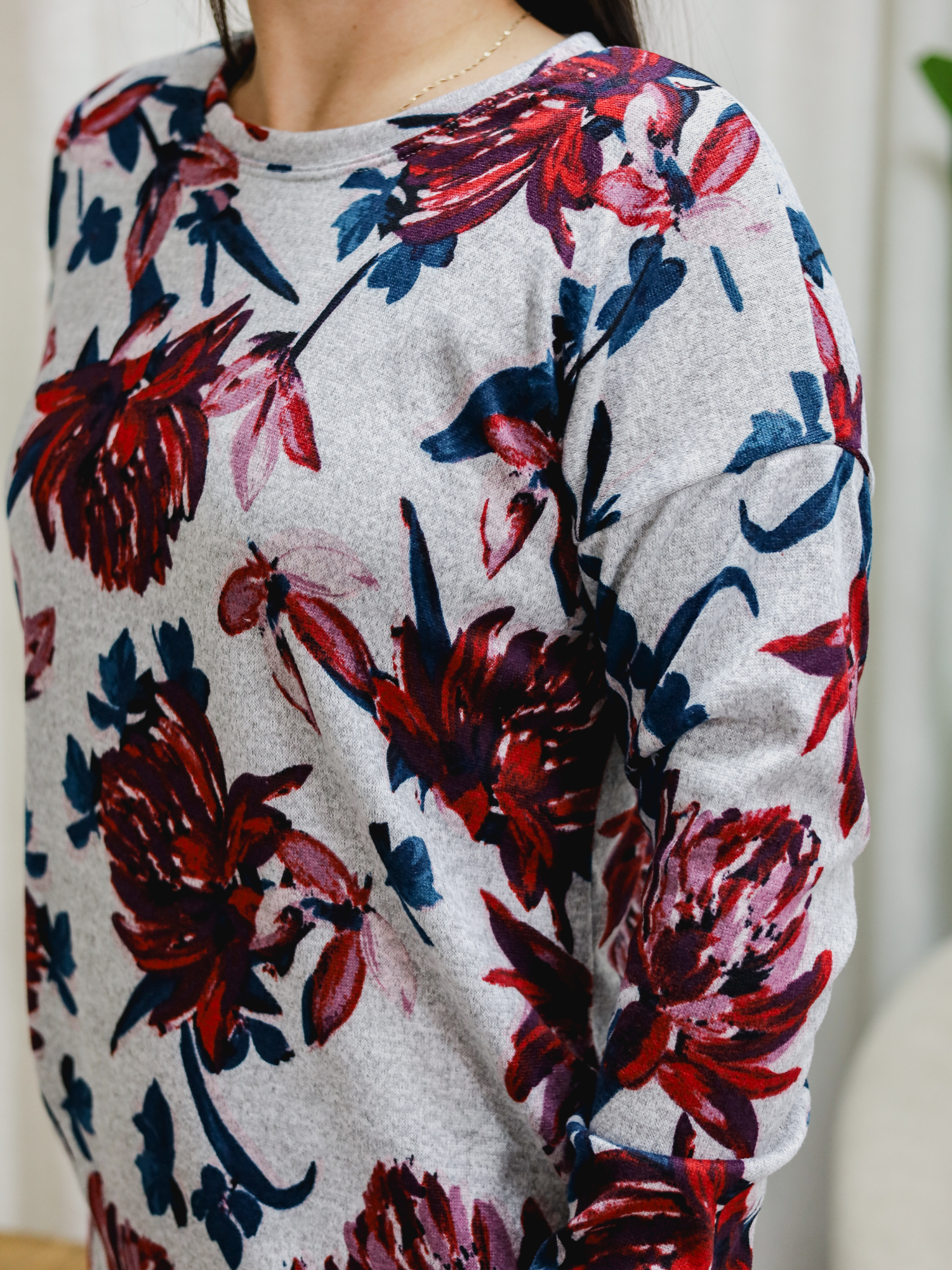 Chandail Kim - Gris fleur rouge
